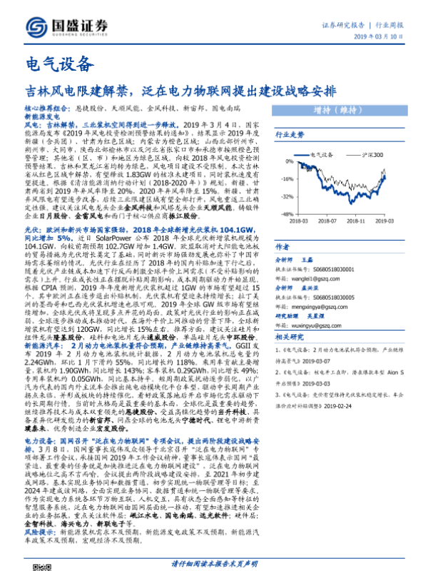 【国盛证券】【20190310】电气设备行业周报:吉林风电限建解禁,泛在电力物联网提出建设战略安排-21页