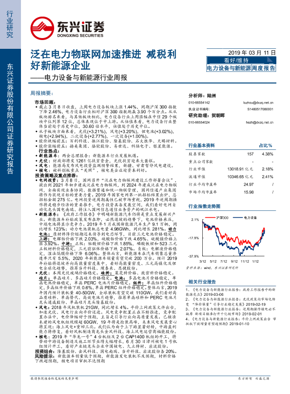 【东兴证券】【20190311】电力设备与新能源行业周报:泛在电力物联网加速推进 减税利好新能源企业-24页