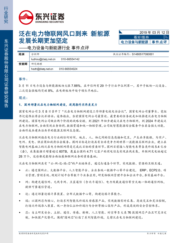 【东兴证券】【20190312】电力设备与新能源行业事件点评:泛在电力物联网风口到来 新能源发展长期更加坚定-5页