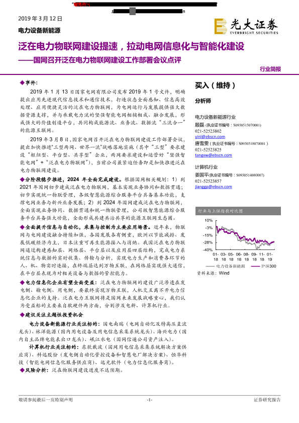 【光大证券】【20190312】电力设备新能源行业简报:国网召开泛在电力物联网建设工作部署会议点评-泛在电力物联网建设提速,拉动电网信息化与智能化建设-3页