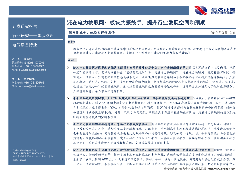 【信达证券】【20190313】国网泛在电力物联网建设点评:泛在电力物联网:板块共振鼓手,提升行业发展空间和预期-4页