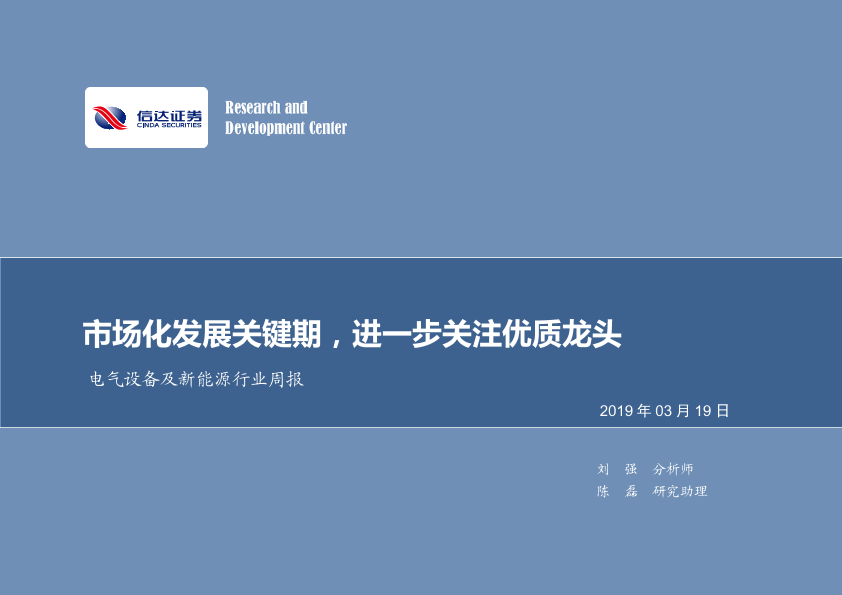 【信达证券】【20190319】电气设备及新能源行业周报:市场化发展关键期,进一步关注优质龙头-19页