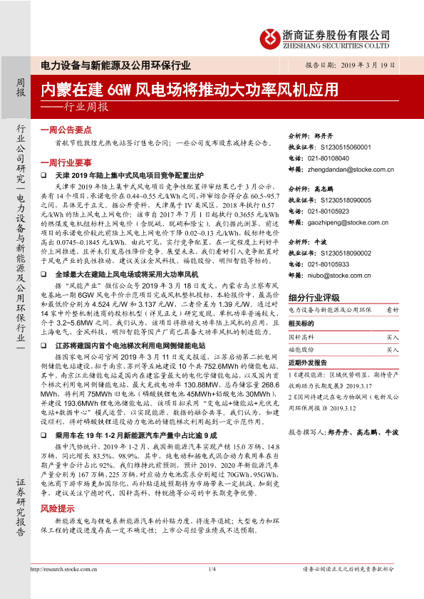 【浙商证券】【20190319】电力设备与新能源及公用环保行业周报:内蒙在建6GW风电场将推动大功率风机应用-4页