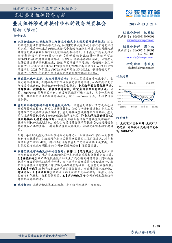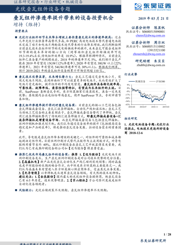 【东吴证券】【20190321】光伏叠瓦组件设备专题:叠瓦组件渗透率提升带来的设备投资机会-28页