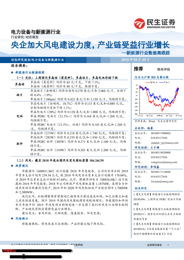 【民生证券】【20190325】20190325-民生证券-新能源行业数据周跟踪:央企加大风电建设力度,产业链受益行业增长-9页
