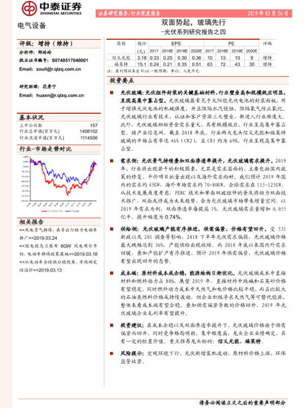 【中泰证券】【20190326】光伏系列研究报告之四:双面势起,玻璃先行-24页