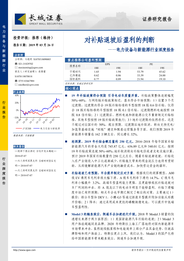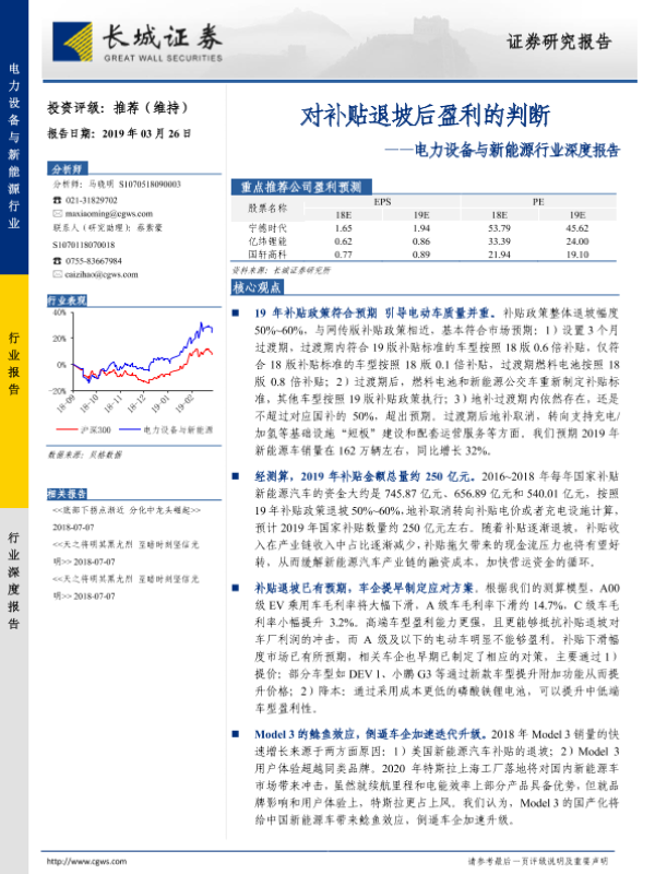 新能源汽车 电力设备 盈利预测 行业分析 补贴政策