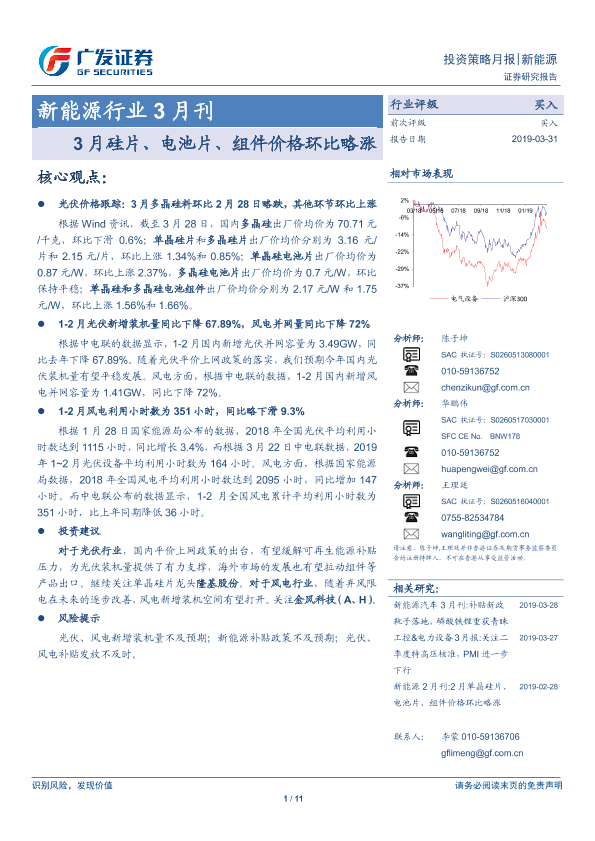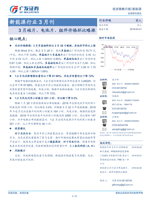 【广发证券】【20190331】新能源行业3月刊:3月硅片、电池片、组件价格环比略涨-11页
