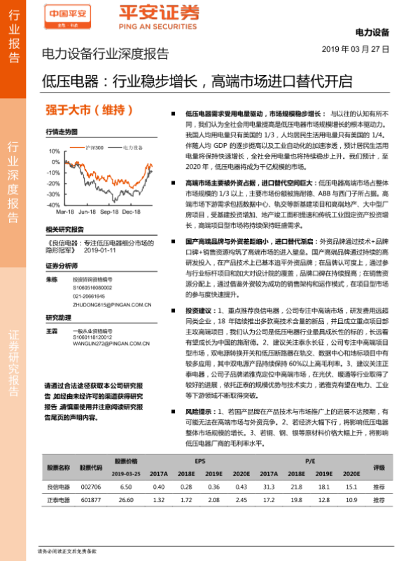 【平安证券】【20190327】电力设备行业深度报告:低压电器,行业稳步增长,高端市场进口替代开启-29页