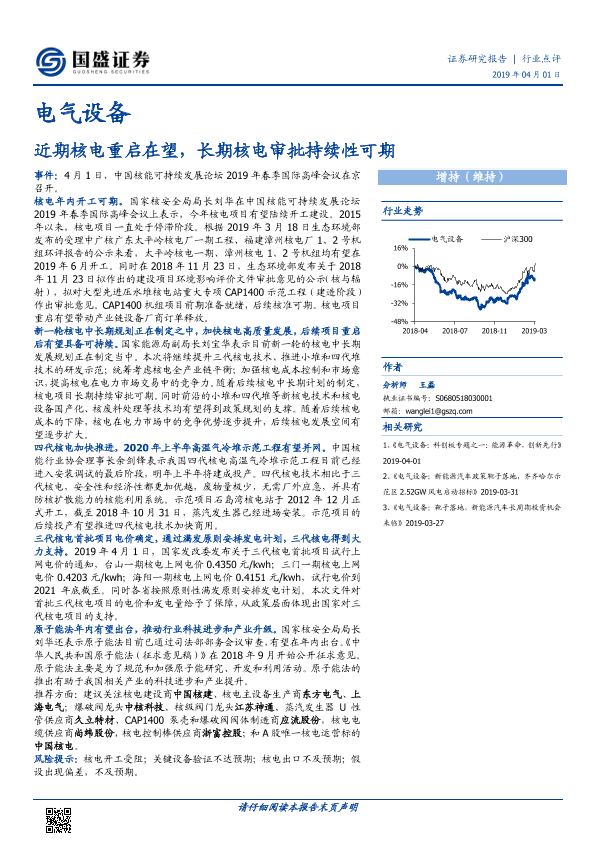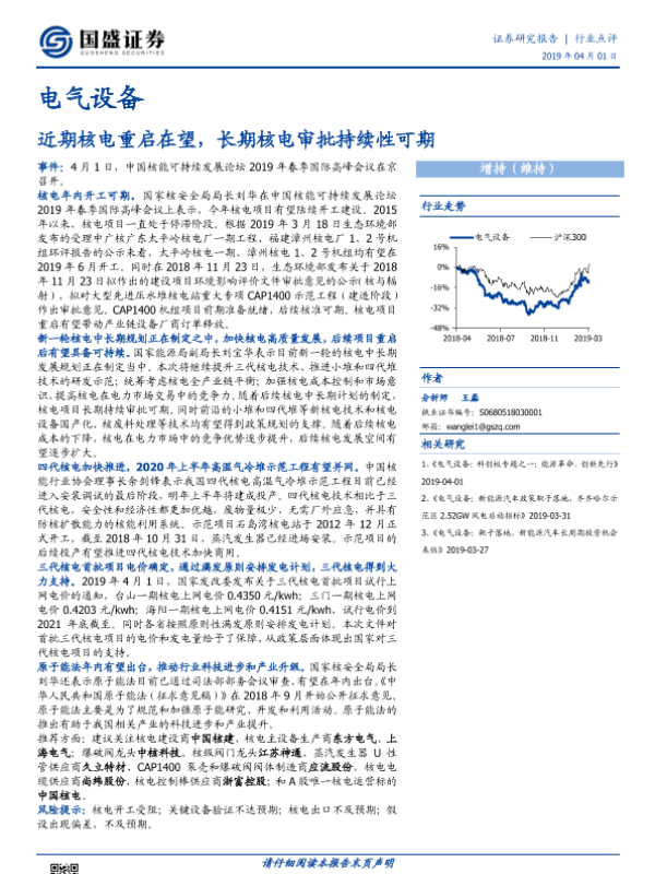 【国盛证券】【20190401】电气设备:近期核电重启在望,长期核电审批持续性可期-3页