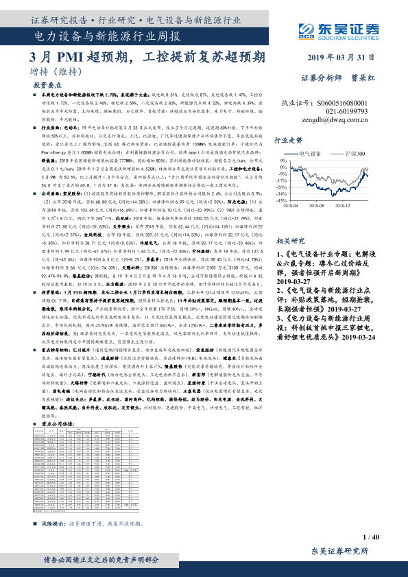 【东吴证券】【20190331】电力设备与新能源行业周报:3月PMI超预期,工控提前复苏超预期-40页