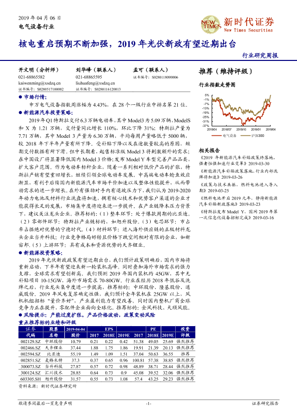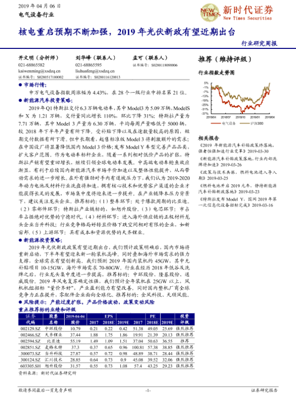 【新时代证券】【20190406】电气设备行业研究周报:核电重启预期不断加强,2019年光伏新政有望近期出台-17页