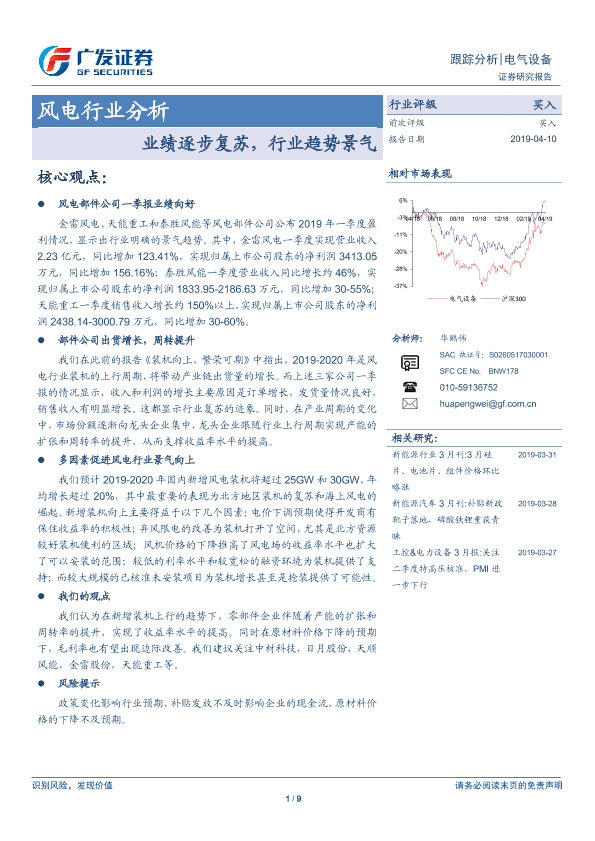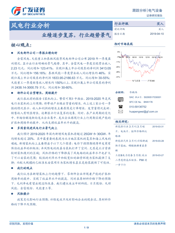 【广发证券】【20190410】风电行业分析:业绩逐步复苏,行业趋势景气-9页