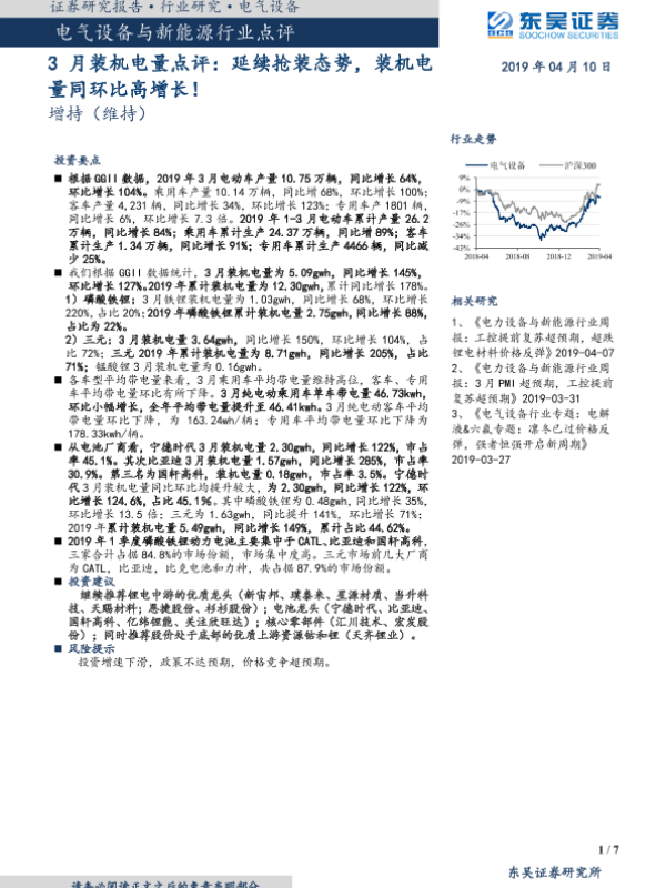 【东吴证券】【20190410】3月装机电量点评:延续抢装态势,装机电量同环比高增长!-7页