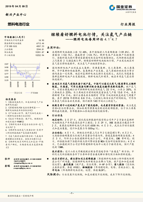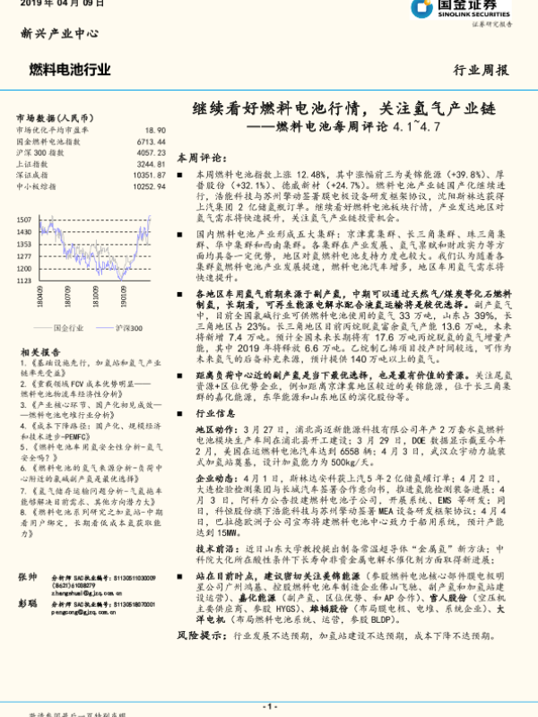 【国金证券】【20190409】20190409-国金证券-燃料电池每周评论:继续看好燃料电池行情,关注氢气产业链-8页