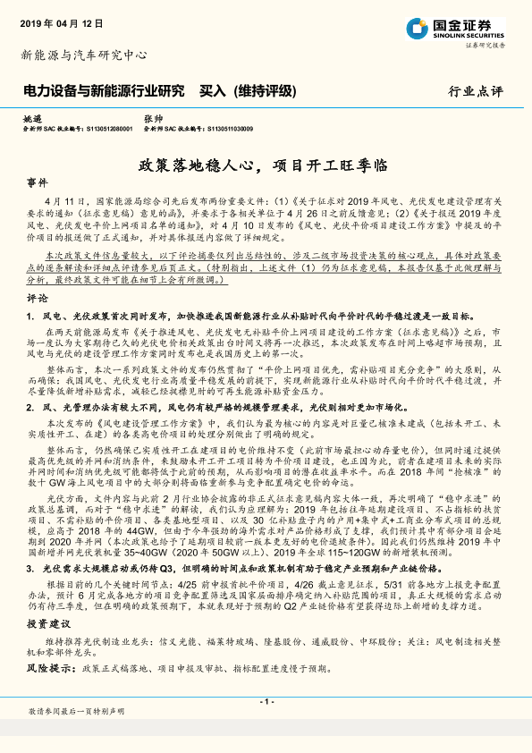 【国金证券】【20190412】电力设备与新能源行业研究:政策落地稳人心,项目开工旺季临-11页