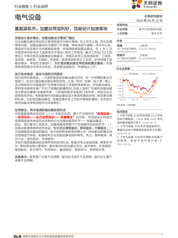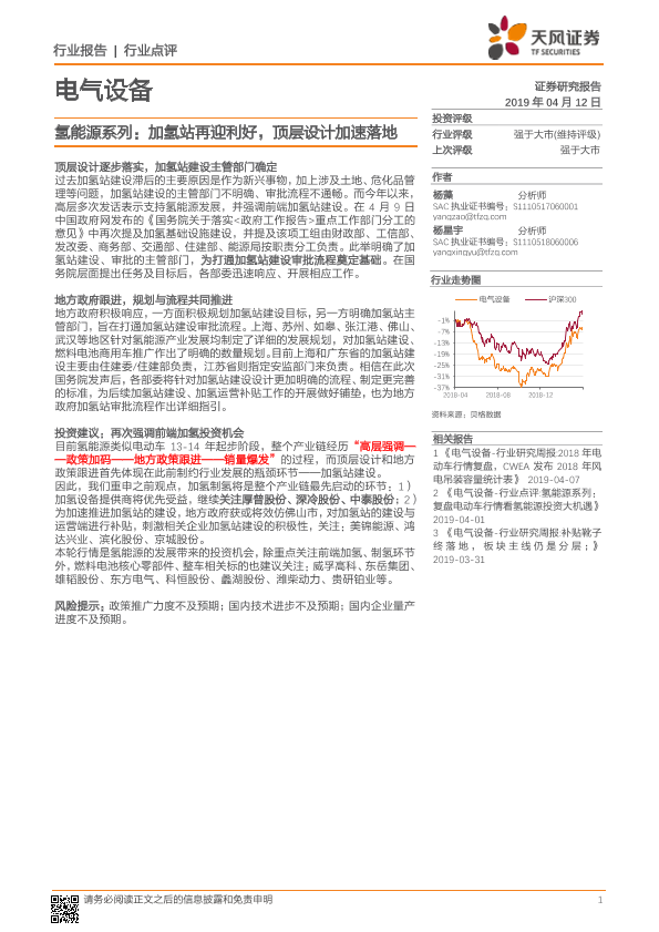 【天风证券】【20190412】电气设备行业点评:氢能源系列:加氢站再迎利好,顶层设计加速落地-6页