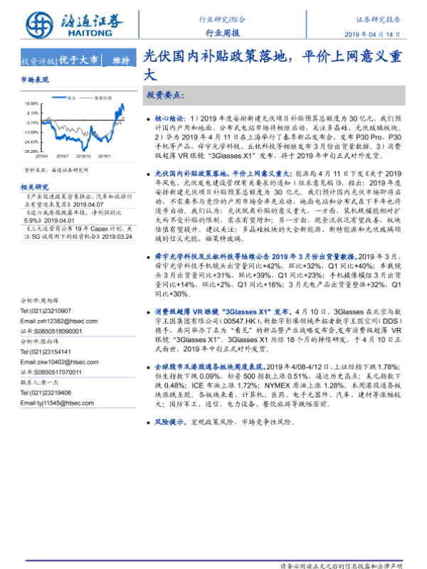 【海通证券】【20190414】20190414-海通证券-综合行业周报:光伏国内补贴政策落地,平价上网意义重大-7页