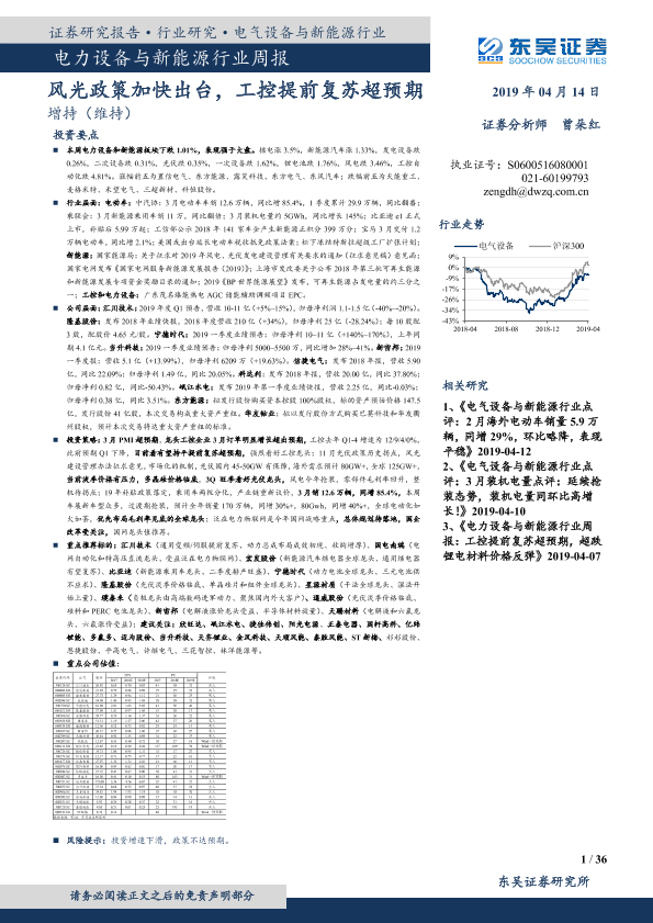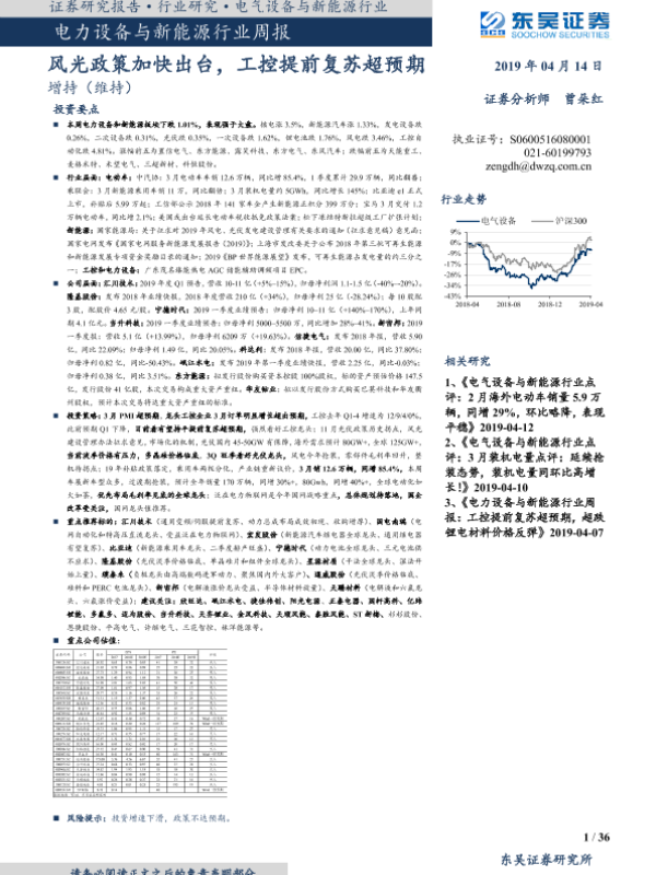 【东吴证券】【20190414】电力设备与新能源行业周报:风光政策加快出台,工控提前复苏超预期-36页