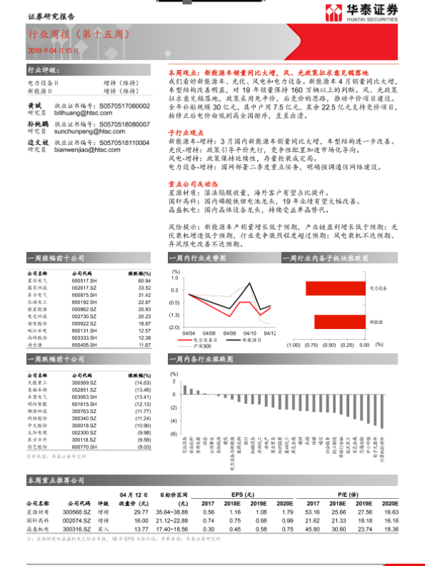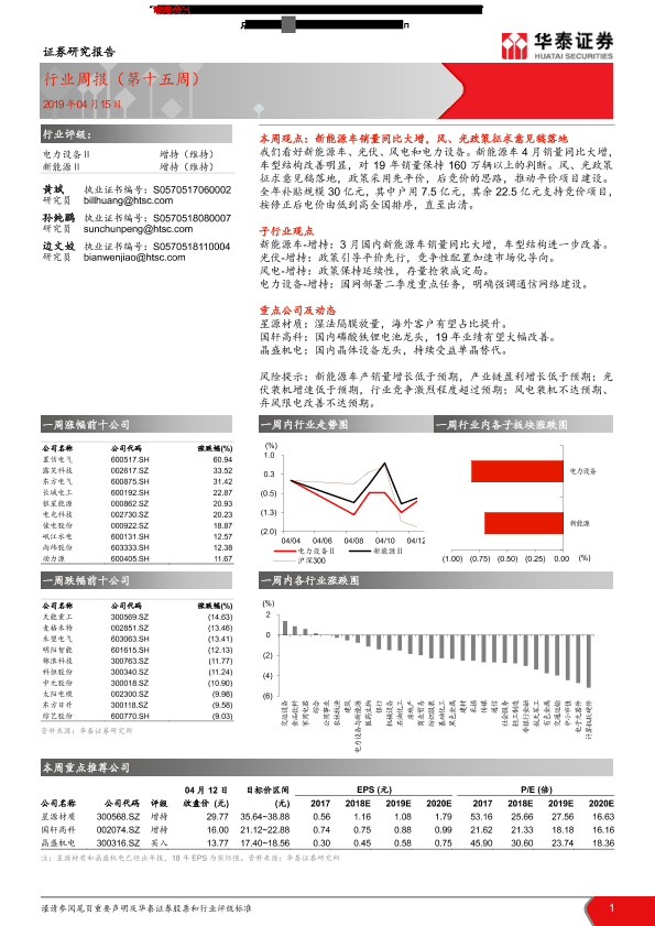 【华泰证券】【20190415】电力设备行业周报(第十五周)-18页