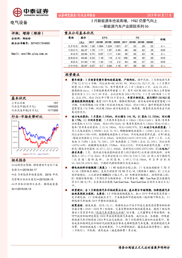 【中泰证券】【20190417】3月新能源车抢装高增,19Q2仍景气向上-13页