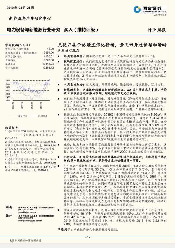 【国金证券】【20190421】20190421-国金证券-新能源与电力设备行业研究周报:光伏产品价格触底催化行情,景气回升趋势越加清晰-4页
