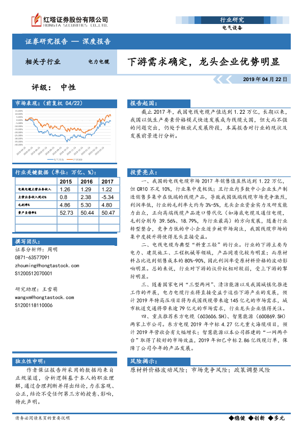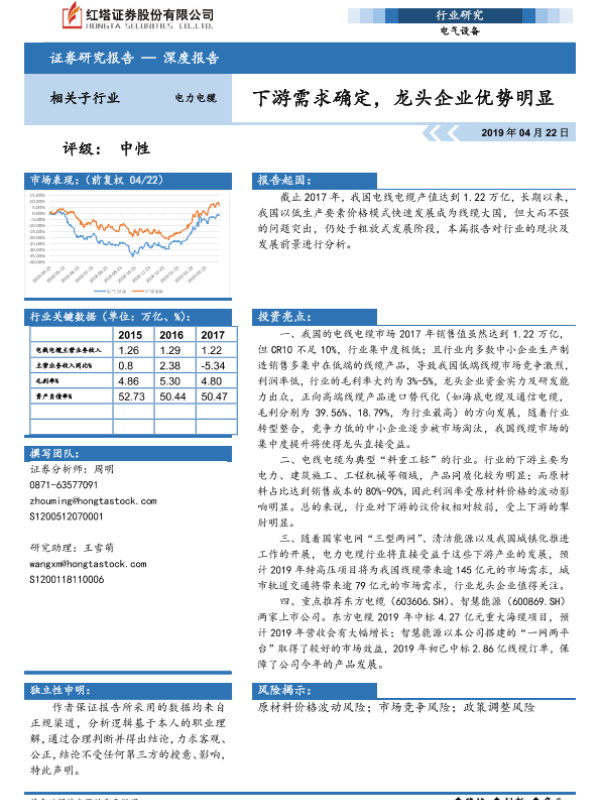 下游需求 市场分析 电力电缆 电气设备 龙头企业