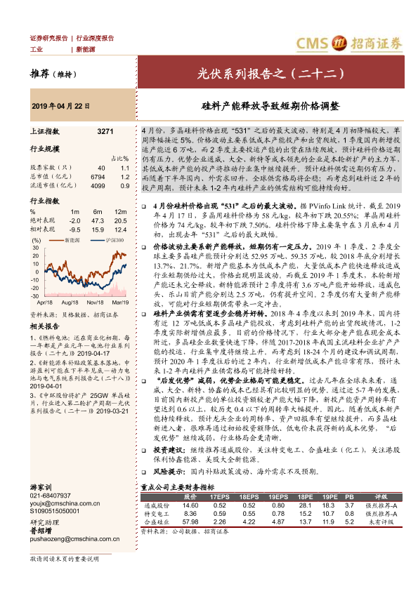 【海通证券】【20190422】光伏系列报告之(二十二):硅料产能释放导致短期价格调整-14页