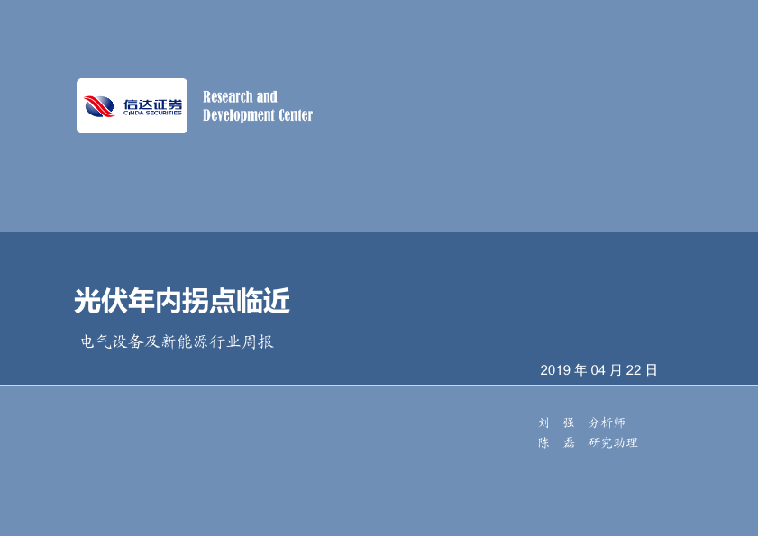 【信达证券】【20190422】电气设备及新能源行业周报:光伏年内拐点临近-20页