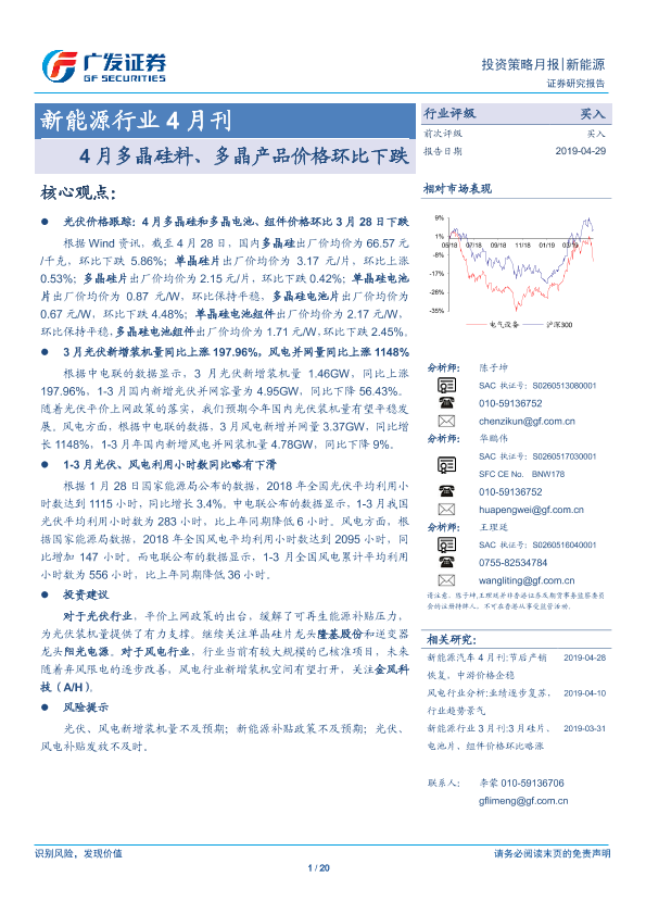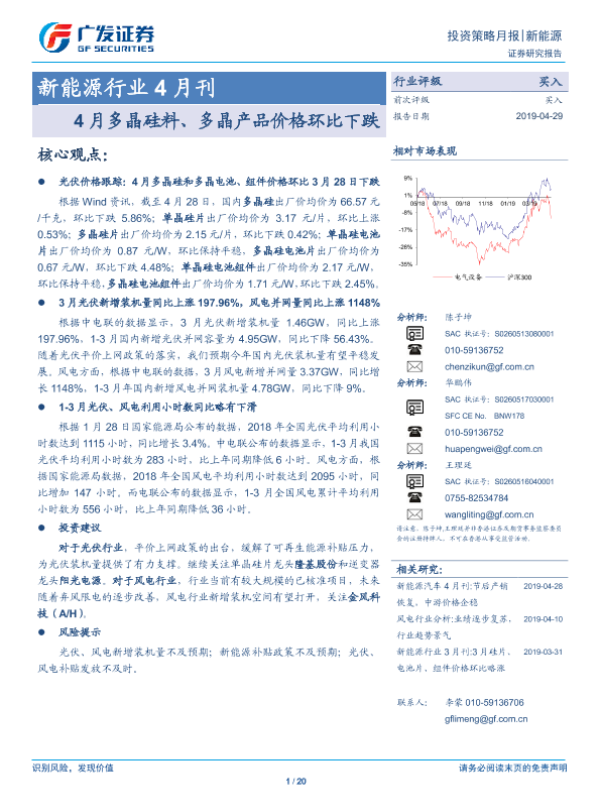 【广发证券】【20190429】20190429-广发证券-新能源行业4月刊:4月多晶硅料、多晶产品价格环比下跌-20页