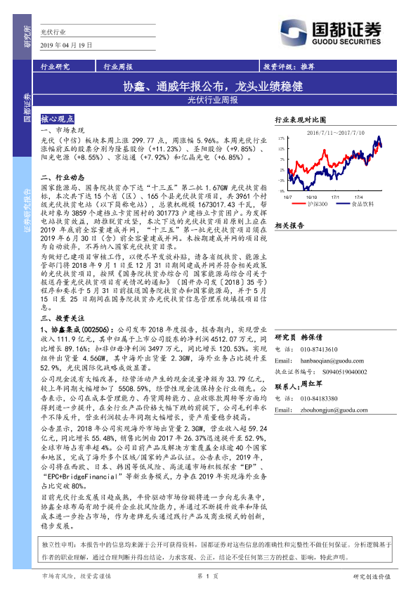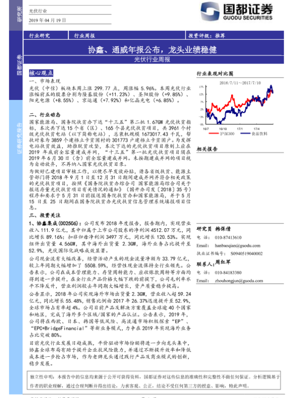 【国都证券】【20190419】光伏行业周报:协鑫、通威年报公布,龙头业绩稳健-3页