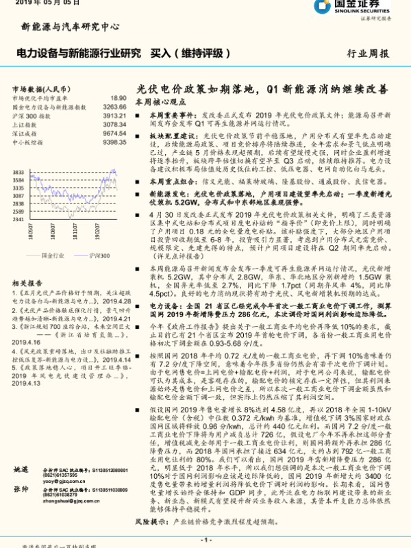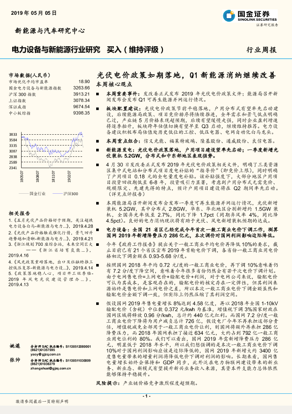 【国金证券】【20190505】20190505-国金证券-电力设备与新能源行业周报:光伏电价政策如期落地,Q1新能源消纳继续改善-4页