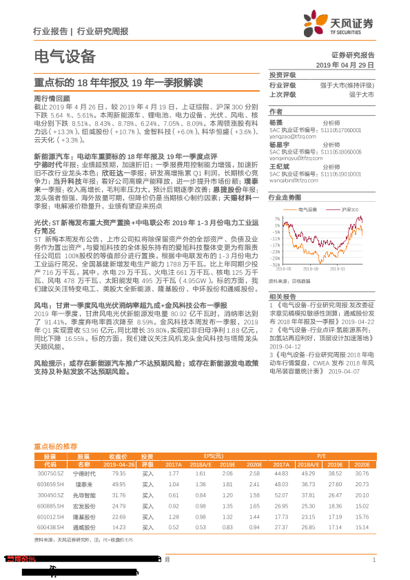 【天风证券】【20190429】电气设备行业研究周报:重点标的18年年报及19年一季报解读-33页