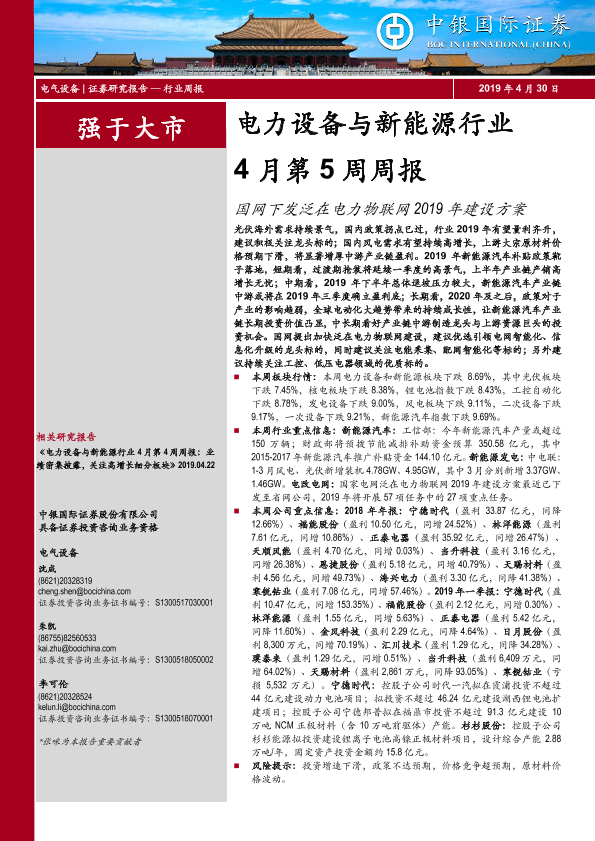 【中银证券】【20190430】电力设备与新能源行业4月第5周周报:国网下发泛在电力物联网2019年建设方案-19页