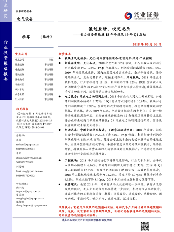 【兴业证券】【20190506】渡过至暗,咬定龙头——电力设备新能源 18年年报及 19年 Q1总结-54页