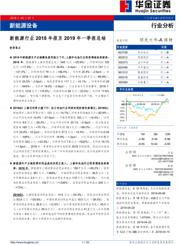 【华金证券】【20190507】新能源行业2018年报及2019年一季报总结-16页