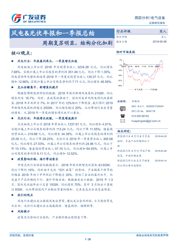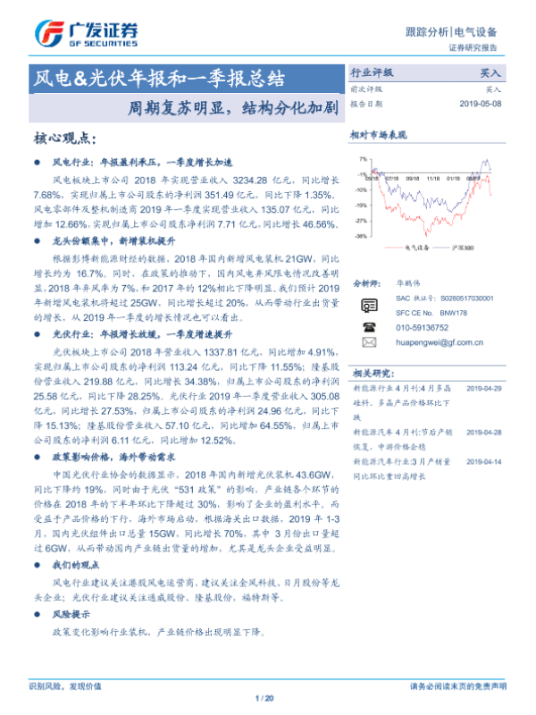 【广发证券】【20190508】风电&光伏年报和一季报总结:周期复苏明显,结构分化加剧-20页