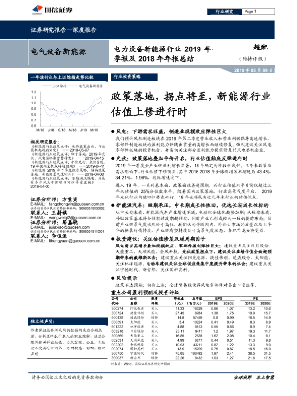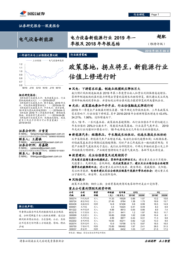 【国信证券】【20190509】电力设备新能源行业2019年一季报及2018年年报总结:政策落地,拐点将至,新能源行业估值上修进行时-24页