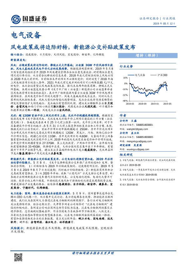 【国盛证券】【20190512】电气设备行业周报:风电政策或将边际好转,新能源公交补贴政策发布-19页