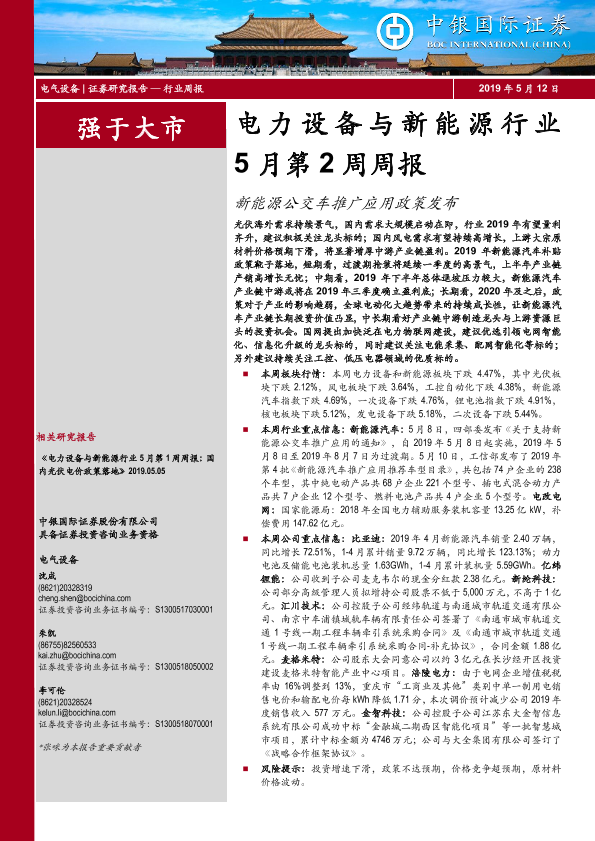 【中银证券】【20190512】电力设备与新能源行业5月第2周周报:新能源公交车推广应用政策发布-18页