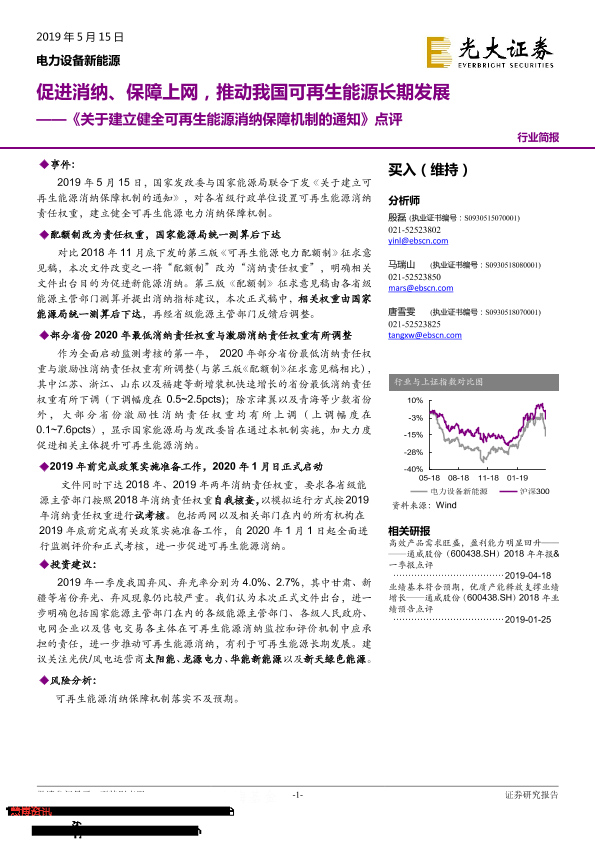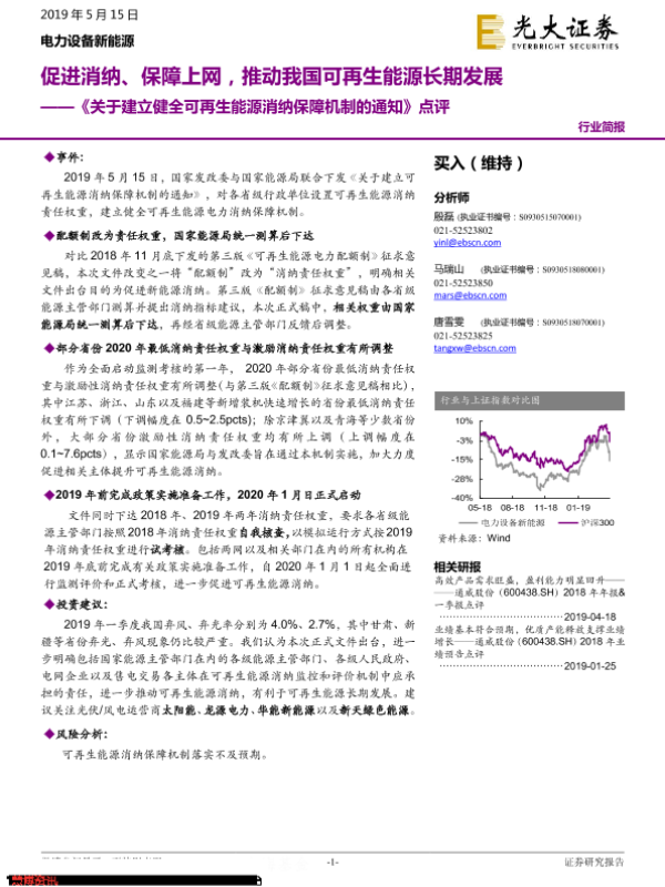 【光大证券】【20190515】关于建立健全可再生能源消纳保障机制的通知点评:促进消纳、保障上网,推动我国可再生能源长期发展-2页