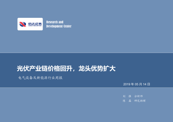 【信达证券】【20190514】电气设备及新能源行业周报:光伏产业链价格回升,龙头优势扩大-19页
