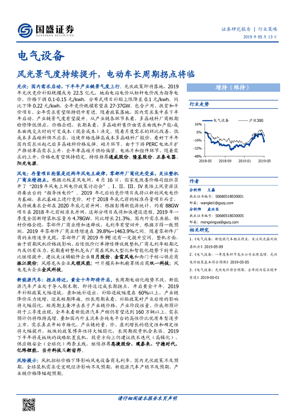 【国盛证券】【20190513】电气设备行业策略:风光景气度持续提升,电动车长周期拐点将临-42页