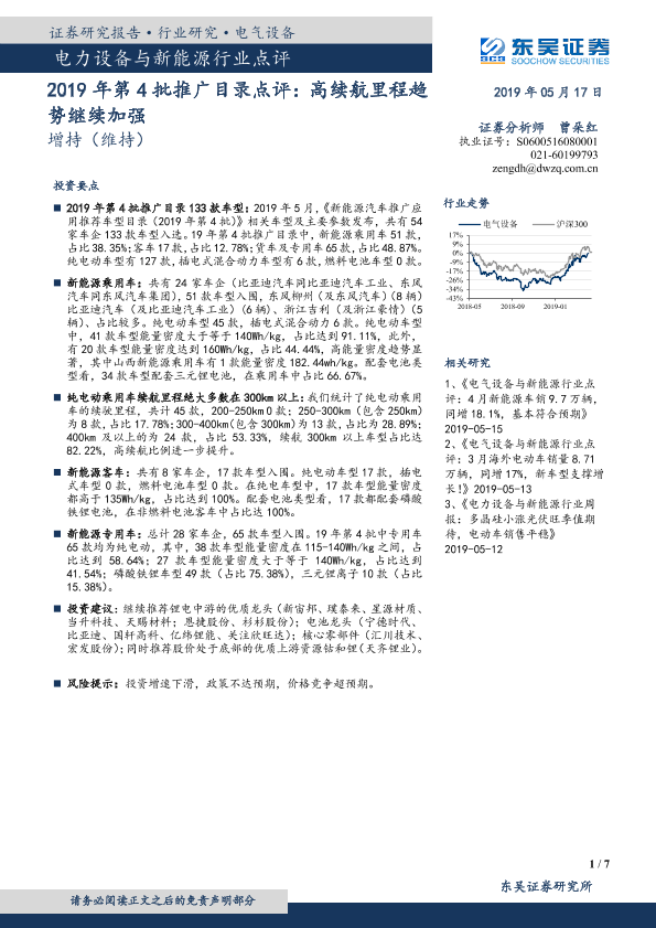 【东吴证券】【20190517】2019年第4批推广目录点评:高续航里程趋势继续加强-7页