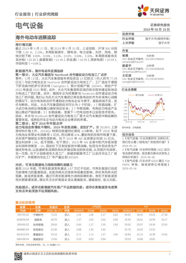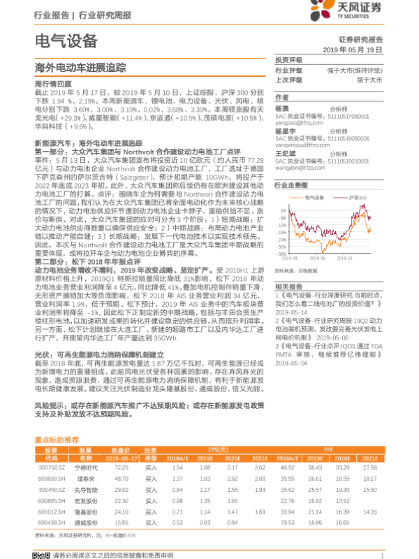 【天风证券】【20190519】电气设备行业研究周报:海外电动车进展追踪-22页
