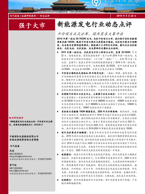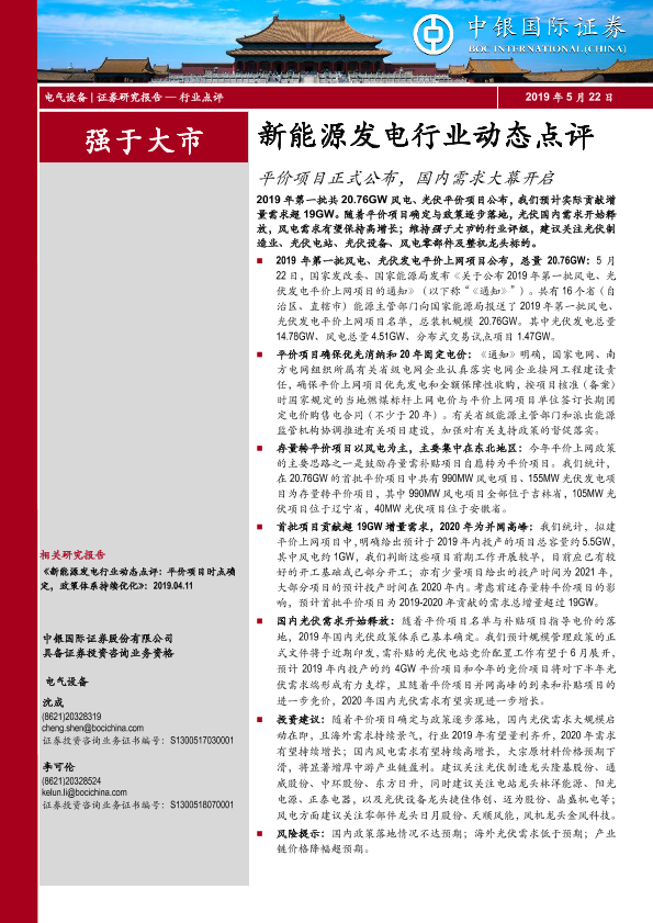 【中银证券】【20190522】新能源发电行业动态点评:平价项目正式公布,国内需求大幕开启-5页