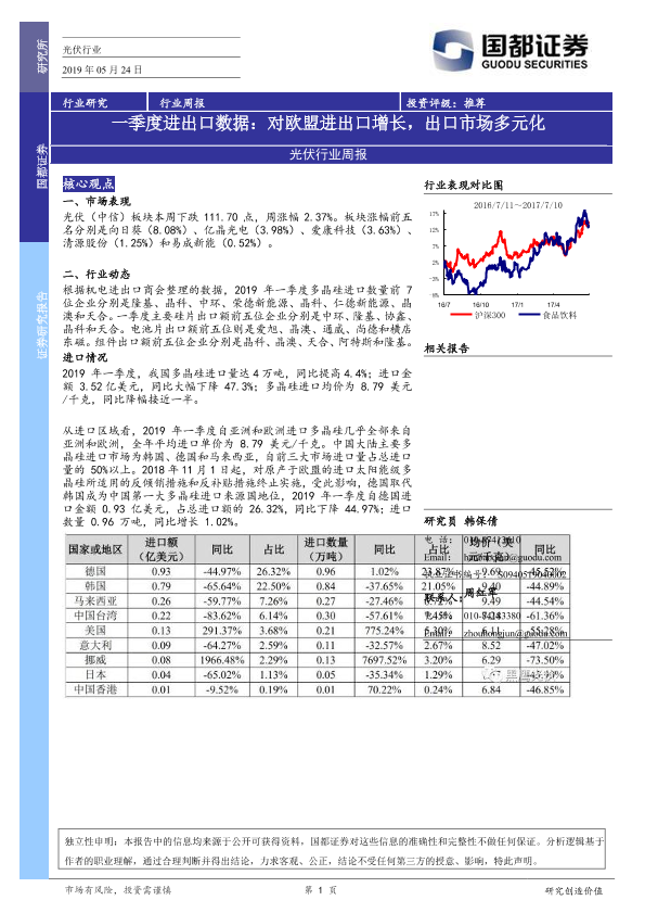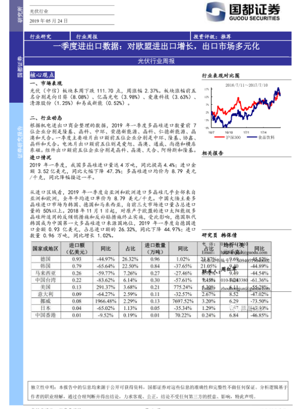 【国都证券】【20190524】光伏行业周报:一季度进出口数据:对欧盟进出口增长,出口市场多元化-4页