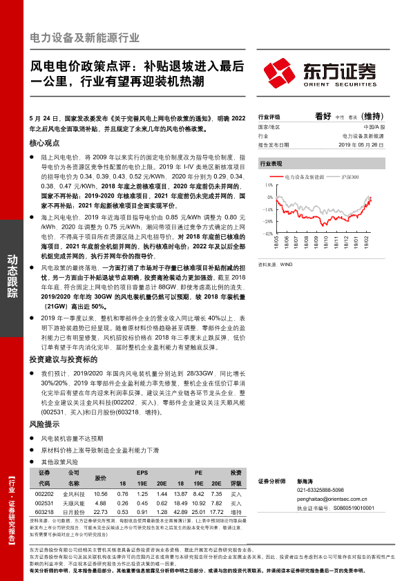 【东方证券】【20190526】电力设备及新能源行业动态跟踪:风电电价政策点评:补贴退坡进入最后一公里,行业有望再迎装机热潮-3页