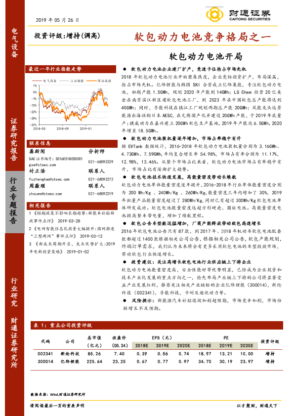 【财通证券】【20190526】电气设备行业专题报告:软包动力电池竞争格局之一:软包动力电池开局-23页