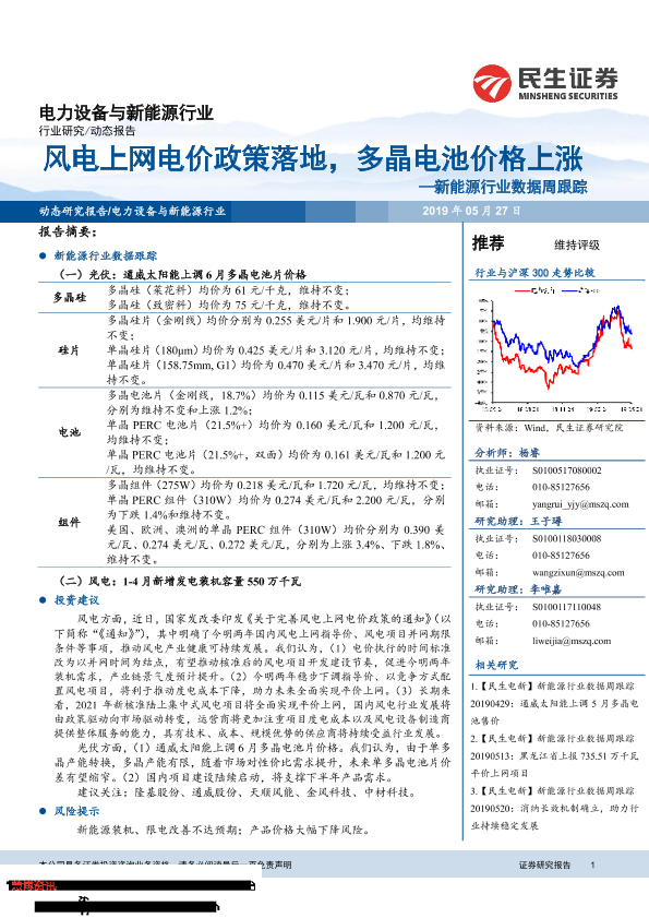 【民生证券】【20190527】风电上网电价政策落地,多晶电池价格上涨——新能源行业数据周跟踪-9页